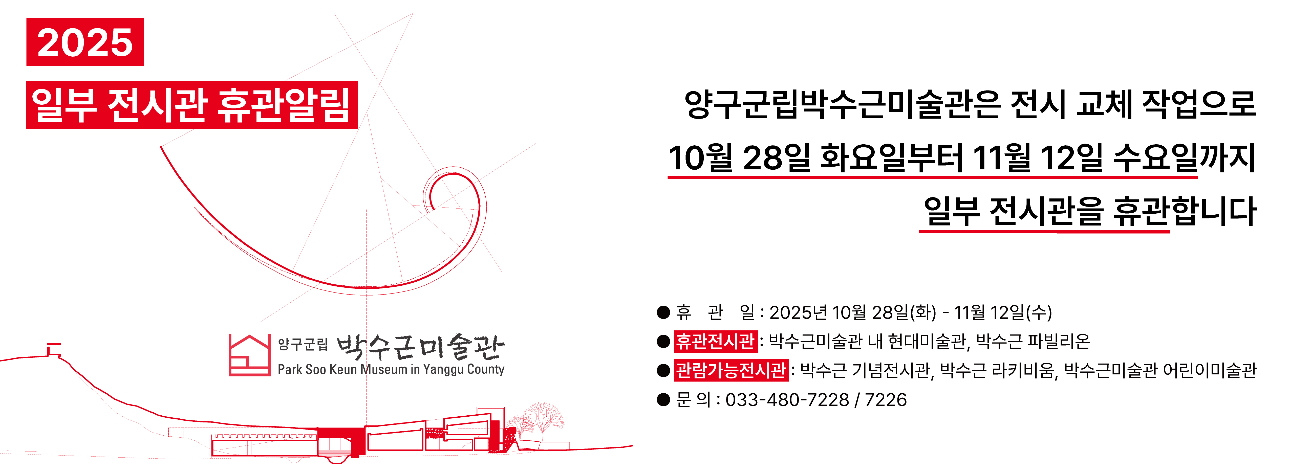 양구군립박수근미술관은 전시 교체 작업으로 10월 28일 화요일부터 11월 12일 수요일까지 일부 전시관을 휴관합니다