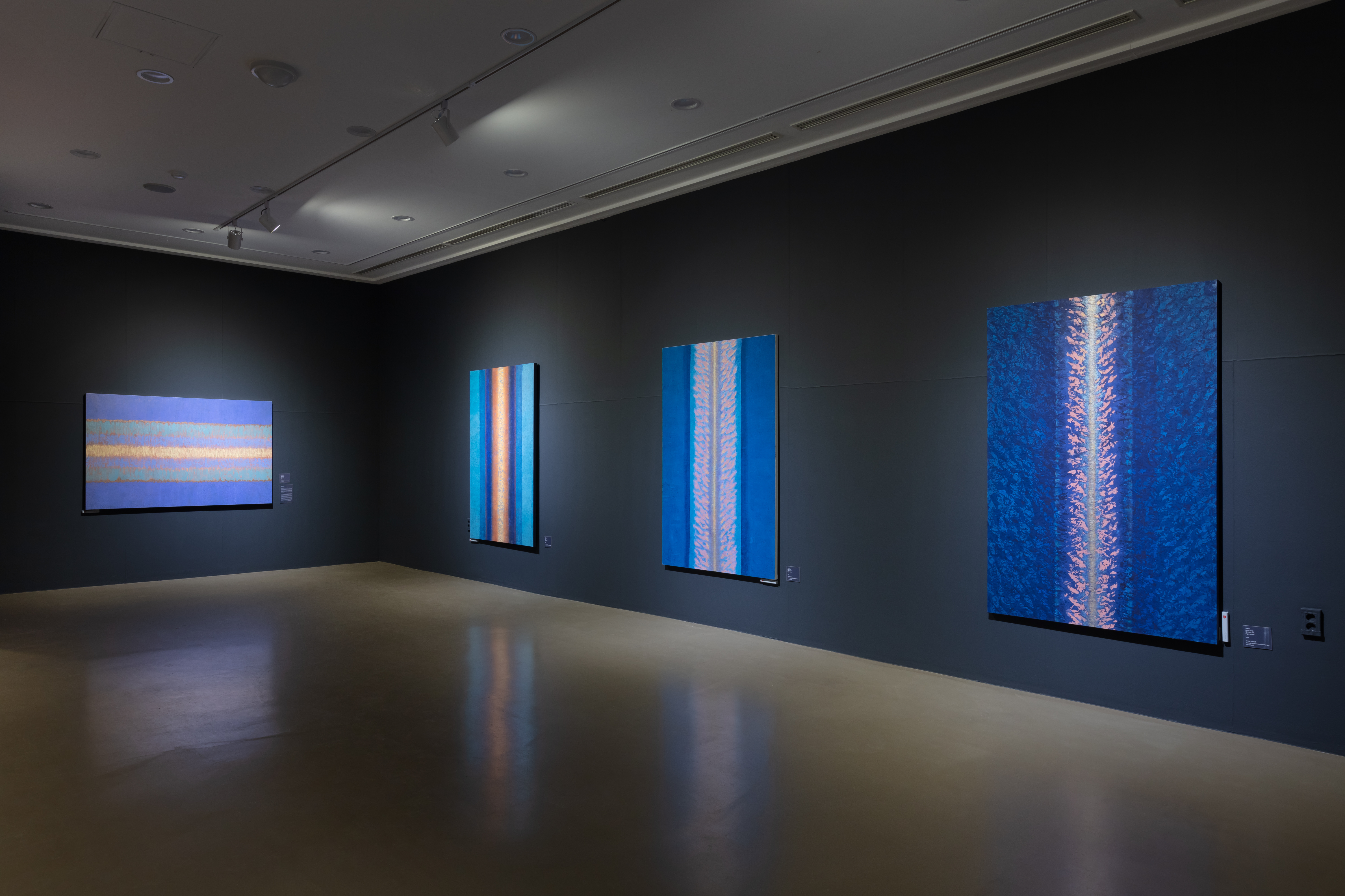 ‘빛의 화가’라 불리는 방혜자 작가는 1961년 프랑스 파리로 유학을 떠나 일흔이 넘은 지금까지 파리에 거주하고 있으며, 현재도 유럽과 한국을 오가며 활발하게 작품 활동을 하고 있다. 이번에 전시된 작품은 작가가 소장하고 있는 작품으로 닥지에 천연안료로 채색한 작품으로 내면의 빛의 효과를 함축적이면서 극대화시킨 작품이다. 또한 1990년대 후반 프랑스 에꼴 드 보자르 객원교수 및 초빙교수를 지내고 2007년 레지옹 도뇌르 훈장을 받은바 있는 이우환의 바람시리즈 중 1982년작 ‘wind’ 작품이 이번 전시에 출품되었다. 한편, 1980년대 바람시리즈는 “엄격한 질서와 통제에서 벗어나 생성과 소멸, 관계의 미학을 보여준다”는 평가를 받고 있다. 더하여 ‘못의 작가‘로 잘 알려진 유봉상은 프랑스에서 20여 년간 체류한 바 있다. 국제적인 대규모 전시 경험을 기반으로 한국미술계를 빛내고 있는 작가는 이번전시에 총5점의 대작을 출품했다. 2019~2020년에 제작된 작품들은 ’못’이라는 날카로운 금속을 재료로 사용하고는 있지만 시각적으로는 평화롭고 고요한 정서를 경험하게 한다.